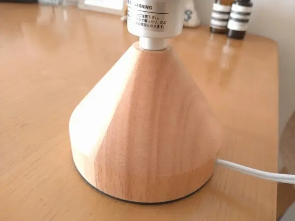 我が家は木の家具が多いので、お部屋に馴染むデザインを考えた時に、木のぬくもりが感じられるライトがいいなと思いました。結果、これにして大正解でした!△の土台もかわいくてお気に入りです。