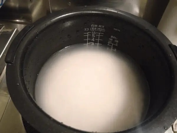 研いだお米を20分~30分浸水させる。