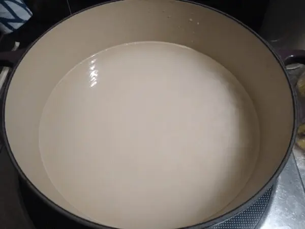 5.火から下ろして、15分蒸らす。(※火から下ろすのがポイント)
