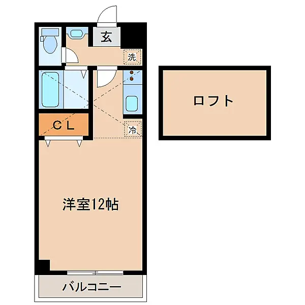 ロフトを寝室にすれば、下をリビングのみとして使用することができ、ワンルームながら、寝室とリビングを分けることが出来ます。