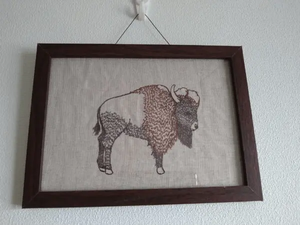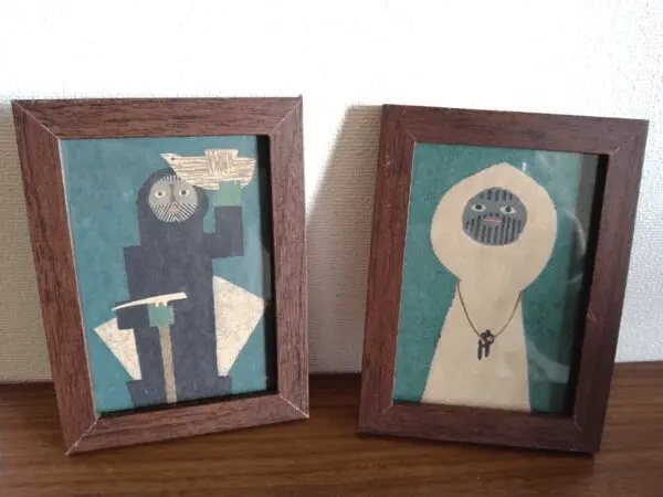 ↓こちらも、クラフト用紙に畦地梅太郎さんの版画絵をネットから検索して印刷したもの。ロフト(寝室として使用)に飾っています。これも本物は高くて購入できないのですが、自分の好きなサイズに印刷してフォトフレームに入れるだけで、素敵なインテリアに。