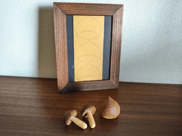 栗のお菓子が入っていた、箱をフォトフレームに合わせてカット。黒い色画用紙は100均で購入。秋にピッタリのインテリアになりました。