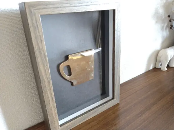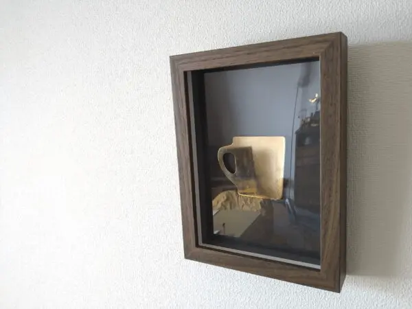 ↓これは、IKEAのフォトフレームに、父親が作ってくれた真鍮のコーヒーカップを入れたもの。