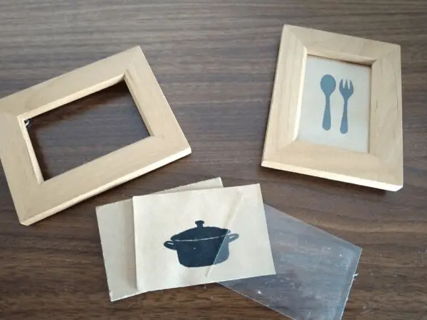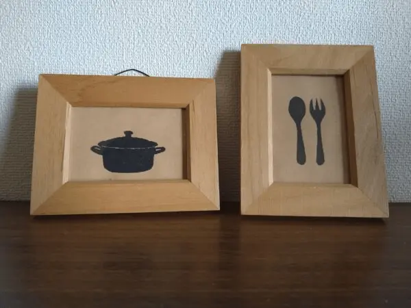クラフト用紙に、ネットで検索した無料の版画テイストの画像を印刷したもの。キッチン付近に飾っていますが、同じフォトフレームを縦と横にして並べて飾っています。可愛くてお気に入りです。