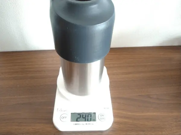 ペットボトルを入れる前の状態で重さを計ってみたら、240gありました。