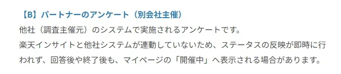 ■楽天インサイトのアンケート:楽天インサイトのアンケートシステムで実施されるアンケート。ポイントは、回答後すぐにポイント履歴の「獲得ポイント一覧」に反映される。