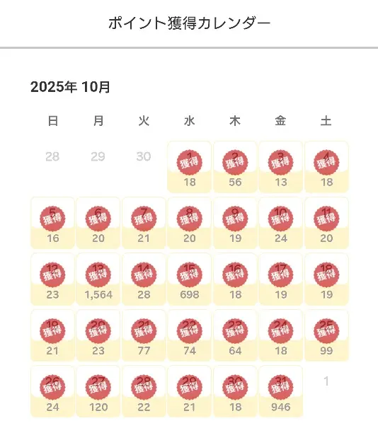 2025年10月の実績は1,136ポイントでした!(1ポイント=1円なので、1,136円分稼いだことになります)