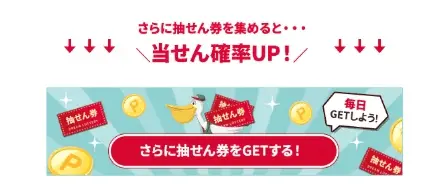 「さらに抽せん券をGETする!」をクリックすると、下記のようなバナーが表示され、クリックするだけで抽せん券をゲットできます。