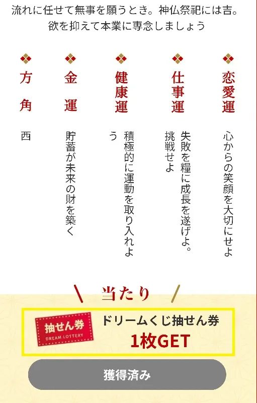「大吉」のみ1ポイントで、他は「抽せん券」がゲットできます