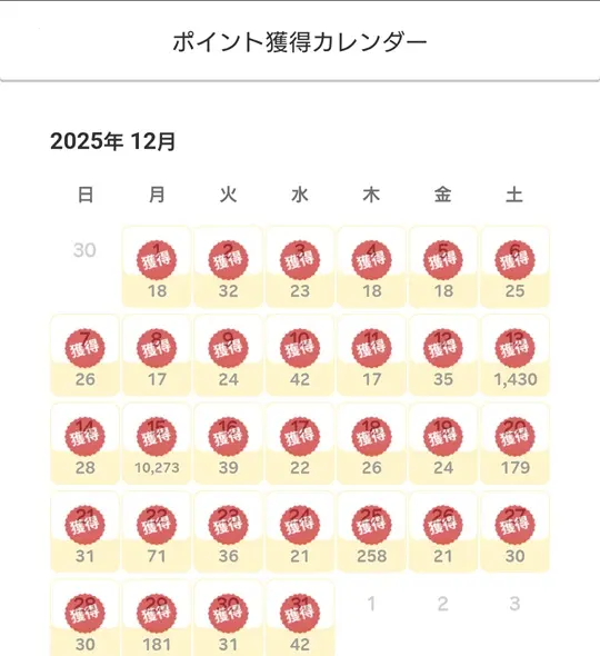2025年12月のポイント実績(※お買い物ポイントを含んだポイント数) 13,068ポイント!