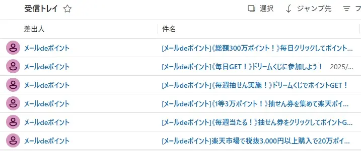私は「メールdeポイント」で毎日メールを受診する設定にしていて、メールをクリックしてドリームくじをゲットしています。