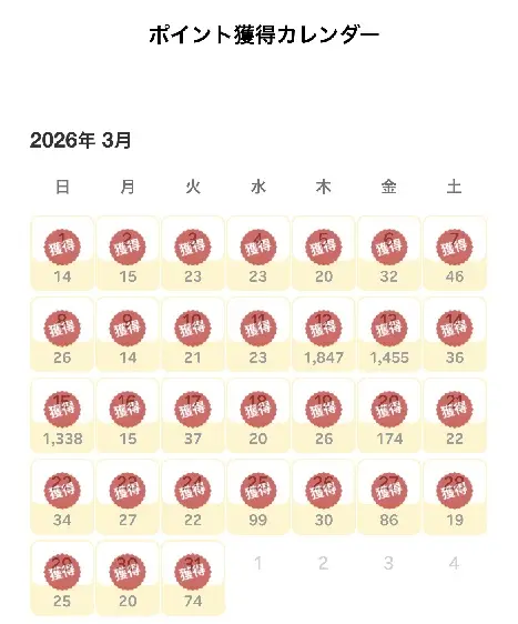 2026年3月の実績は1,776ポイントでした!(1ポイント=1円なので、1,776円分稼いだことになります)