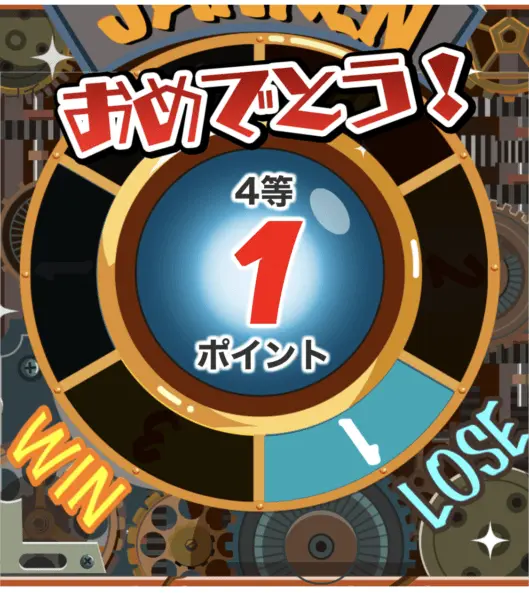 毎日じゃんけんの勝負を2回出来るのですが、2回中1回は勝つことがまぁまぁあり、「1ポイント」をゲット出来ていたのですが、(中にはLOSEで1ポイントもゲットできない日もありますが…)