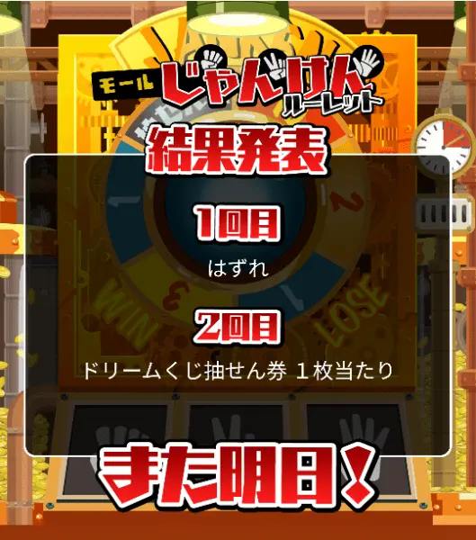 モールくじの「じゃんけん」で買っても、「ドリームくじ抽選券」が増えた