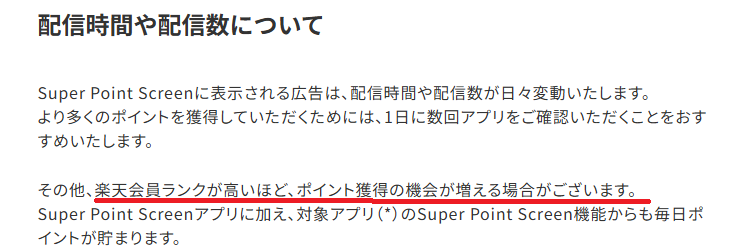 「楽天Super Point Screen」の無条件に貰えていたポイントも、2ポイント⇒3ポイントへ復活しています。